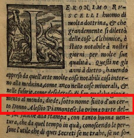‘Don Alessio Piemontese, that blasphemous Agrippa [von Nettesheim], Girolamo Ruscelli, Isabella Cortese, whose name is believed to be false along with Don Alessio’s by Ruscelli…’