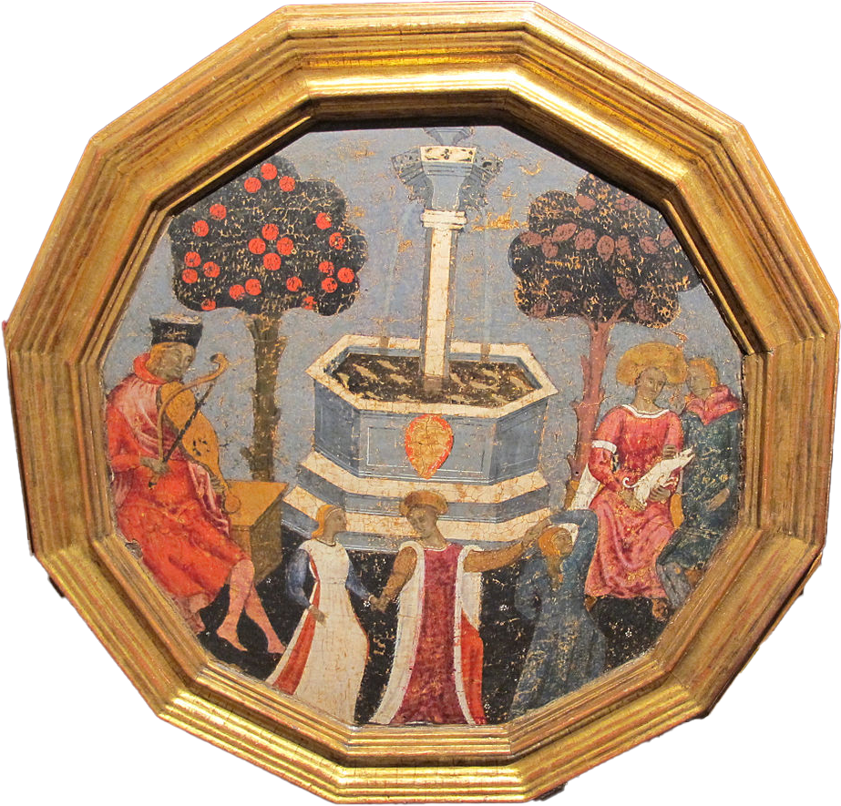 What if a seemingly ordinary wooden tray could tell the story of a society’s rebirth after one of the deadliest epidemics in history? “In the year of our Lord 1348, there happened at Florence, the finest city in all Italy, a most terrible plague…” So starts Boccaccio’s Decameron, one of the most celebrated texts in medieval literature. The Decameron tells us much about the plague, which came to be known as the Black Death. It’s hard to estimate how many people died, but the epidemic is believed to have killed between 30 to 50% of the entire population of Europe, so between 75 and 200 million people in just a few years. In the Italian peninsula, around half of the population died. The city of Florence was particularly hit – the disease was even known as ‘the plague of Florence’. According to Boccaccio, 100,000 people died, leaving the city devastated. The Decameron is many things, including a fabulous read and the basis for Netflix’s very creative series, but it is also a story of renewal, recreation, and resilience. It’s full of life. And, following the catastrophic plague, that’s just what was needed in Europe, and especially in Tuscany. Families and communities needed to rebuild themselves and what better way than by creating new life? Let’s talk about one of the ways motherhood was encouraged, through the art of childbirth.