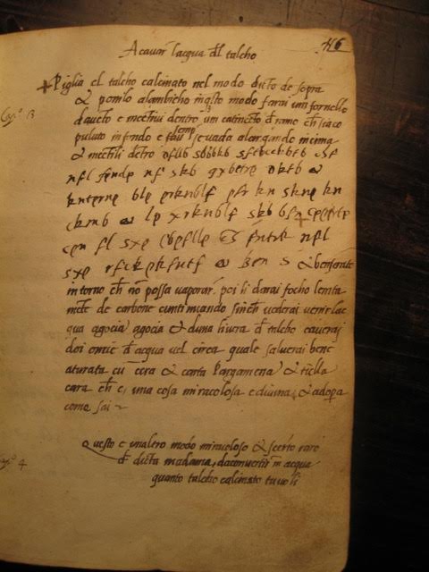 Through these connections, Caterina’s collection grew; and we know that she prescribed recipes for others. Her daughter, for instance, wrote to her asking for advice about respiratory problems. In return for one of her mother’s recipes, she would send her some fruit. Besides that, Caterina swapped alchemical formulas with Maximilian I, who had married her sister, Bianca Maria Sforza, and would be the Holy Roman Emperor from 1508. So, Caterina had extensive contacts across Europe, especially at courts, to whom she would send her recipes. And she would receive many others in exchange to expand her own colelction, in what historians have called ‘court experimentalism’ and in which Caterina’s descendants, the Medici, excelled. So, Renaissance recipes had a rich social life, and these books could always be annotated by current users, with new recipes being added and older ones being corrected or improved.