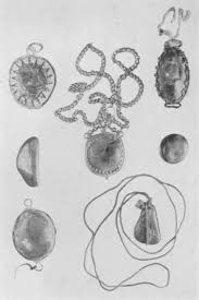 As you can see, discussing lapidary cures in general, and especially eaglestones, was not uncommon among Renaissance humanists. But using the stones was popular among people of all kinds. Their price varied greatly – depending on the story that came with it. If you were buying a rare specimen from Persia or India, it wouldn’t cost the same as a home-grown eaglestone from the neighbouring town, would it? Some were as expensive as precious stones and so only wealthy women would have had access to them. The stones could be expensive; a woman in Scotland, Anna Balfour, included her in her will. But they could be bought from apothecary shops too. According to the Italian philosopher Marsilio Ficino, the best stones would be udner the influence of Venus and the moon – making them ideal for women. Many Renaissance women agreed, perhaps most famously Isabella d’Este, the marchioness of Mantua and a fabulous alchemist I have mentioned on this channel before. So, clearly, the eaglestones were found in elilte households (we know that thanks to inventories), but price lists from German shops indicate that they weren’t too expensive. In any case, women were know to borrow eaglestones from friends and family when they were pregnant, or even from midwives. Muslim, Christian and Jewish women all seem to have used eaglestones – the Talmud even mentioned ‘preserving stones’, which were interpreted by some as a reference to eaglestones, as they would protect women from miscarrying. These stones were still sond in French pharmacies in the 19th century. Joan Evans, who wrote a fantastic book about magic jewellery in the 1920s, describes how this belief was still present among rural communities in England in the 20th century.
