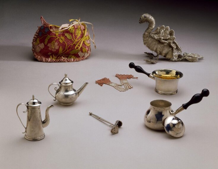 In the passage I quoted earlier, Shakespeare was describing how life was composed of a series of phases, seven, to be precise. Infancy was a time of growth, childhood was for play, and youth was marked by lust. He was not alone in this; Thomas More, wrote ‘I am called Childhood, in play is all my mind’ in the 1490s, mentioning several games. So, there was an expectation that play was important for children. This was why toys would be made or bought for children by adults, whether a parent, friend, or a professional toymaker. But of course, just like today, children could make their own toys. I mean, if you’re a parent, I’m sure you’ve had the experience of giving a gift to your child only for them to prefer playing with the box, turning it into a spaceship or, in my child’s case, a giant alien’s head, which she generously gave me as a gift. So, just like today, popular toys would have included dolls, figurines, and miniature versions of utensils, allowing children to imitate the world of adults. We know that small models of adult objects were widely manufactured in Tudor England by pewterers and ‘whitesmiths’, who worked with soft metals. These toys were commonly made of pewter, a mixture of lead and tin, and it’s probably fair to assume that these objects were often side projects to complement the main business of producing utensils for adults. In London, these items seem to have been popular and have been found in the mud of the River Thames, as well as in Yorkshire. They could be figurines, boats, or miniature kitchen objects such as cups, ewers, and dishes, like miniature kitchen sets; because even in the 16th century, children loved to pretend-cook, apparently! And so, toy kitchens, mud kitchens an imaginative play were already a thing.