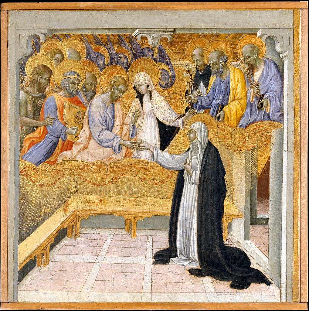 Detail from Giudizio Universale, by Giovanni di Paolo, showing two nuns embracing